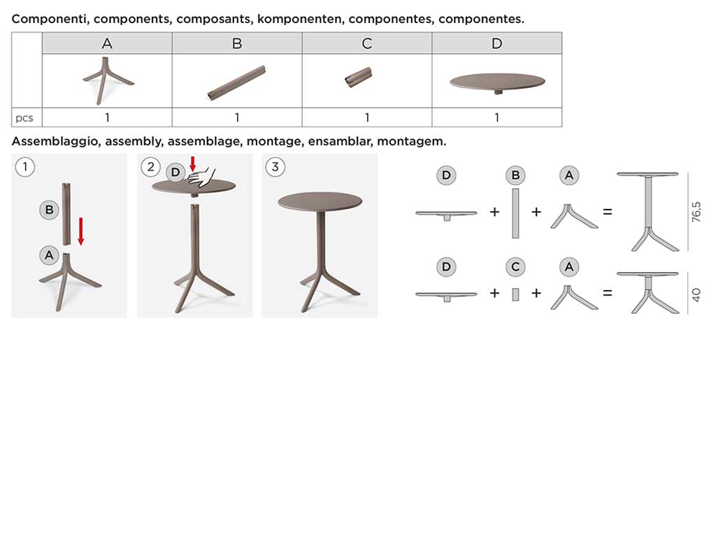 The leg can be added or removed, in this way the little table Spritz is transformed into Spritz Mini.
