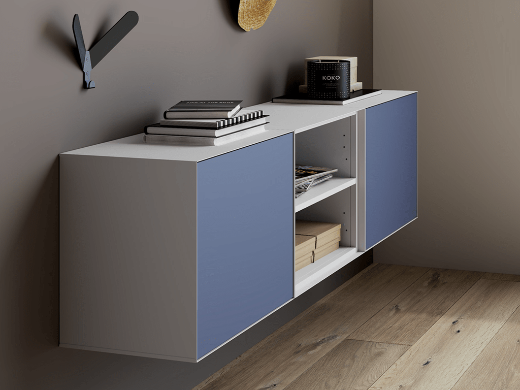 You can combine MBOX open metal with MBOX suspended metal cabinet with drawer and door or MBOX suspended wood cabinet with drawer or door.