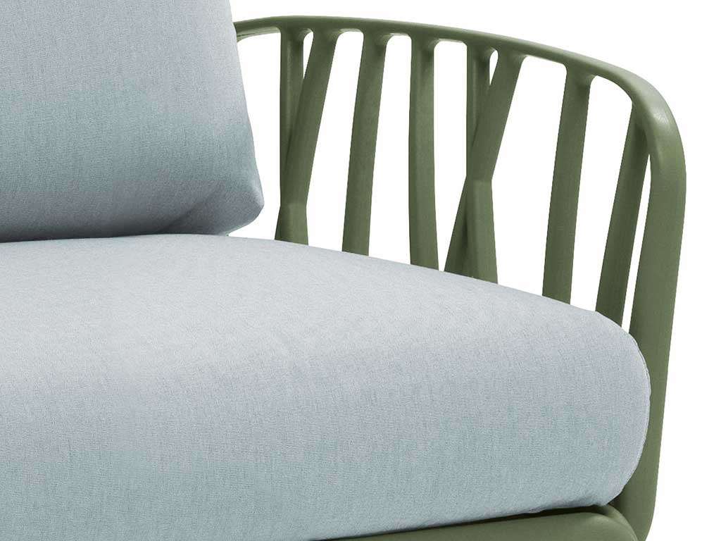 Modular upholstered seating system, sectional and configurable at will. The structure, inspired by the branches of the trees, characterizes the furniture and welcomes soft and colorful cushions in order to create your own open-air room.