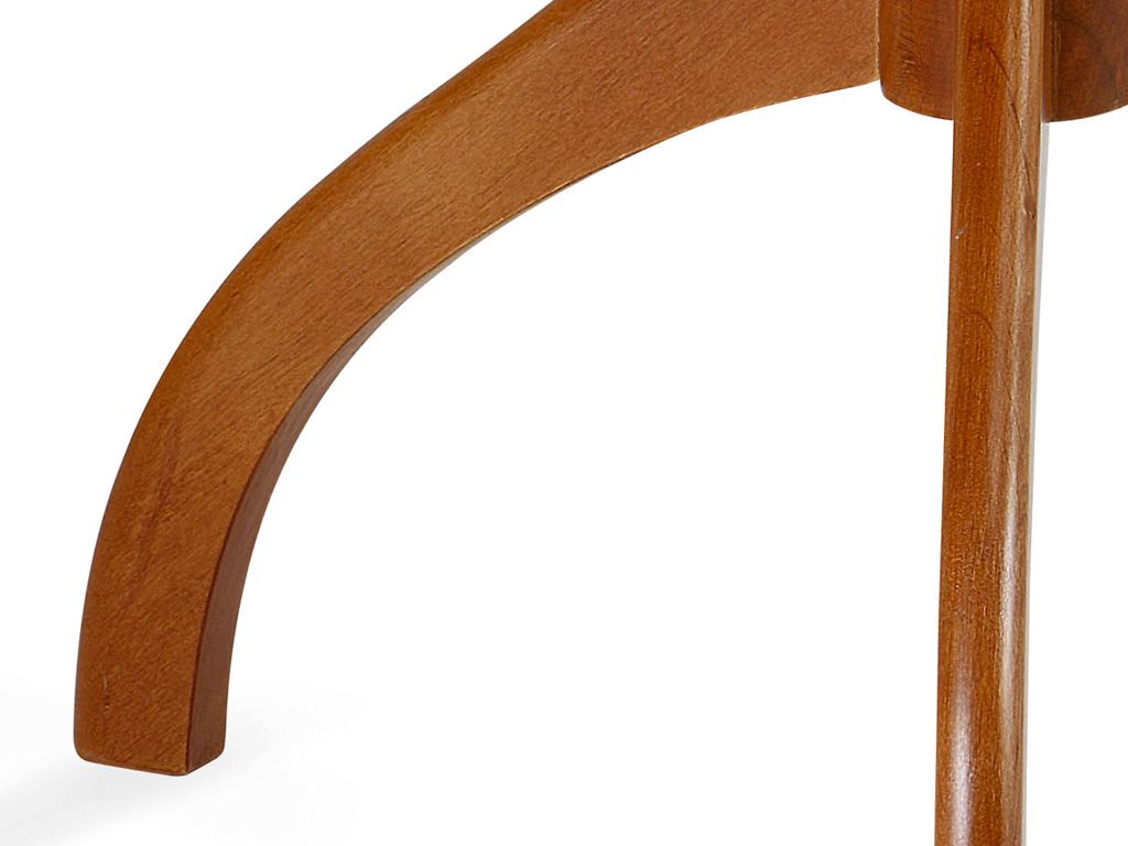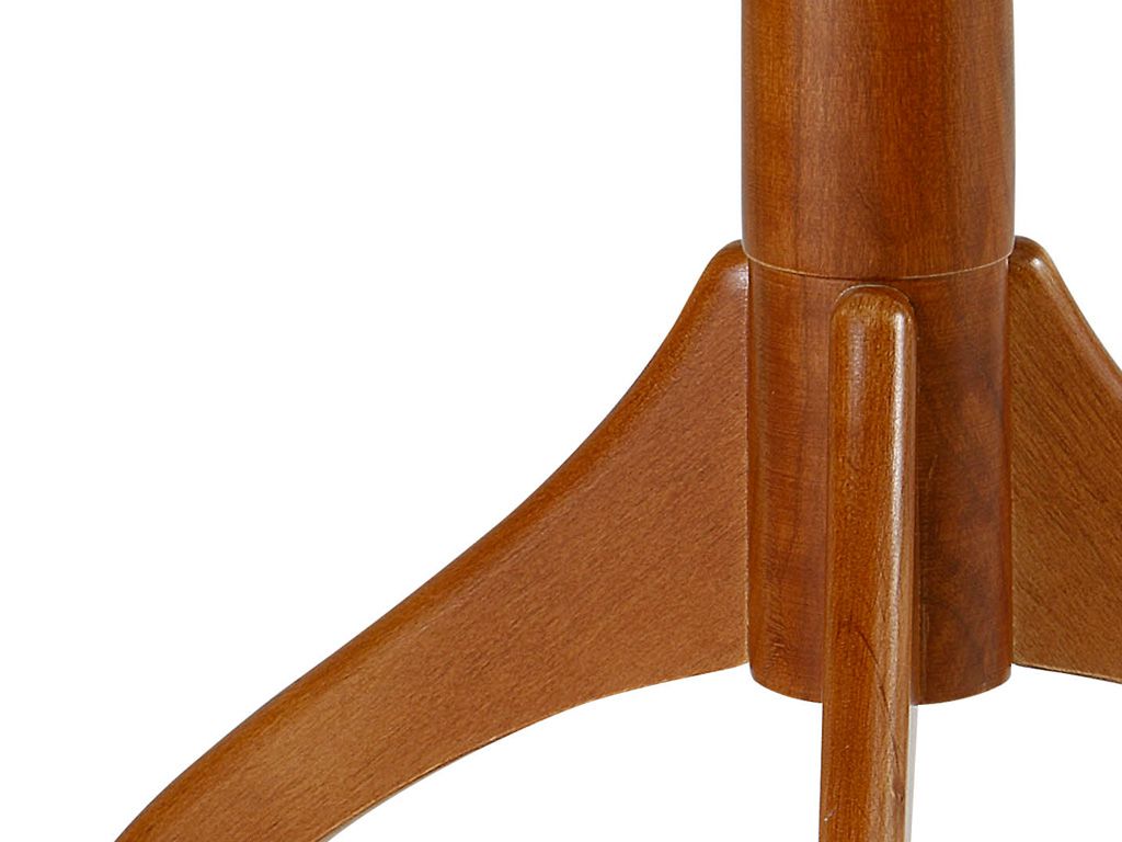 Coffee table in solid cherry stained wood, with round or rectangular top and a three-feet base.