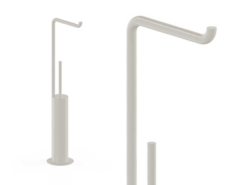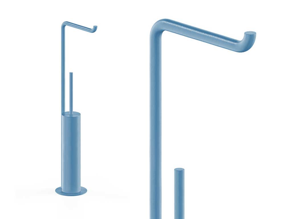 Designer toilet brush with toilet roll holder, toilet roll holder and toilet brush in painted brass, ideal as colourful bathroom accessories or designer bathroom accessories. Dimensions: SM176/1 - Base Ø.11 - W. 11 H. 62 D. 18 cm Toilet brush and toilet paper holder with an elegant and functional design, perfect for modern and refined bathroom environments. Its light and minimalist structure is made of painted metal in a range of refined pastel colours that add a fresh and cheerful touch to the space. Its sinuous lines and essential profile make it a contemporary piece of furniture, ideal for those seeking a practical solution without sacrificing aesthetics. the toilet brush and toilet paper holder blends harmoniously into the environment, creating a relaxing and sophisticated atmosphere. Thanks to its stability and versatility, it is suitable for different types of bathrooms, from domestic spas to luxury hotels. A furnishing accessory that combines form and function, transforming an everyday object into a distinctive element of style. Made in Italy