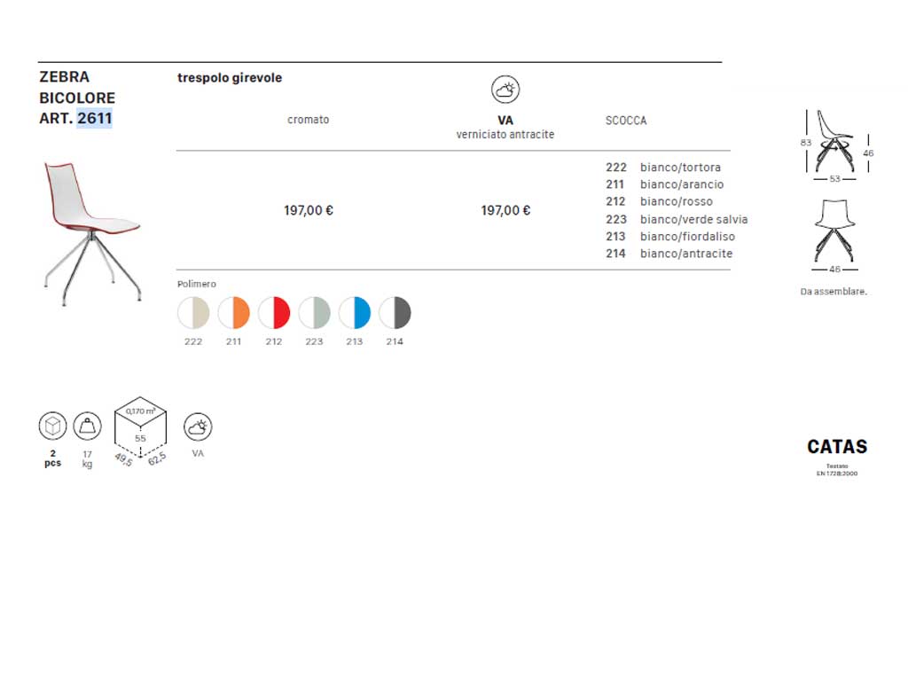 Swivel chair, office chair, office chair no wheels, perfect as desk chair ore swivel chair for office Chair with two-colored body made of polymer and aturnable structure on a trestle in chromed steel. To assemble.