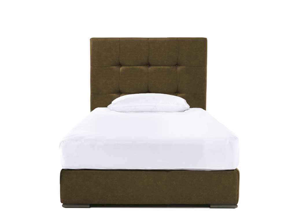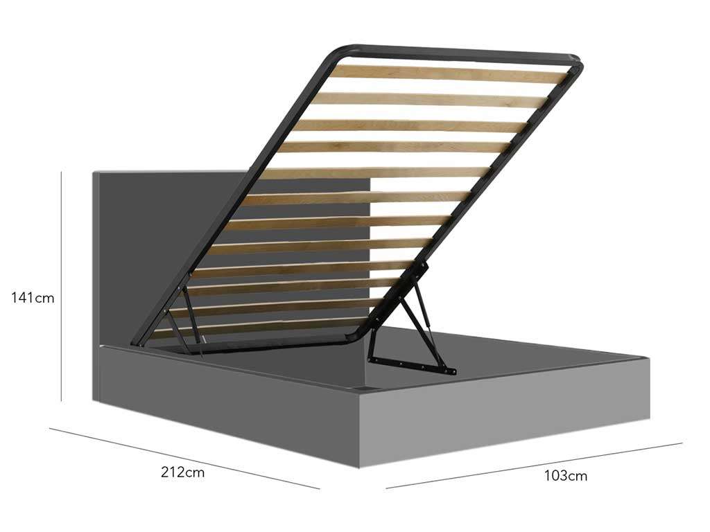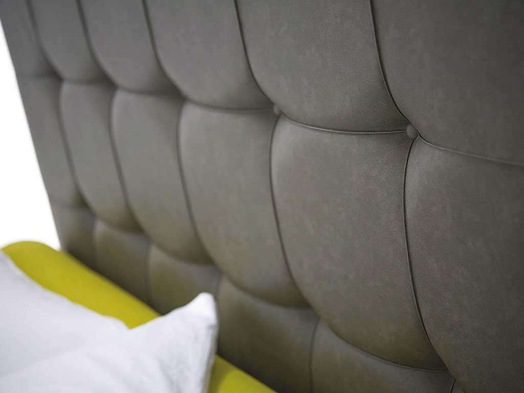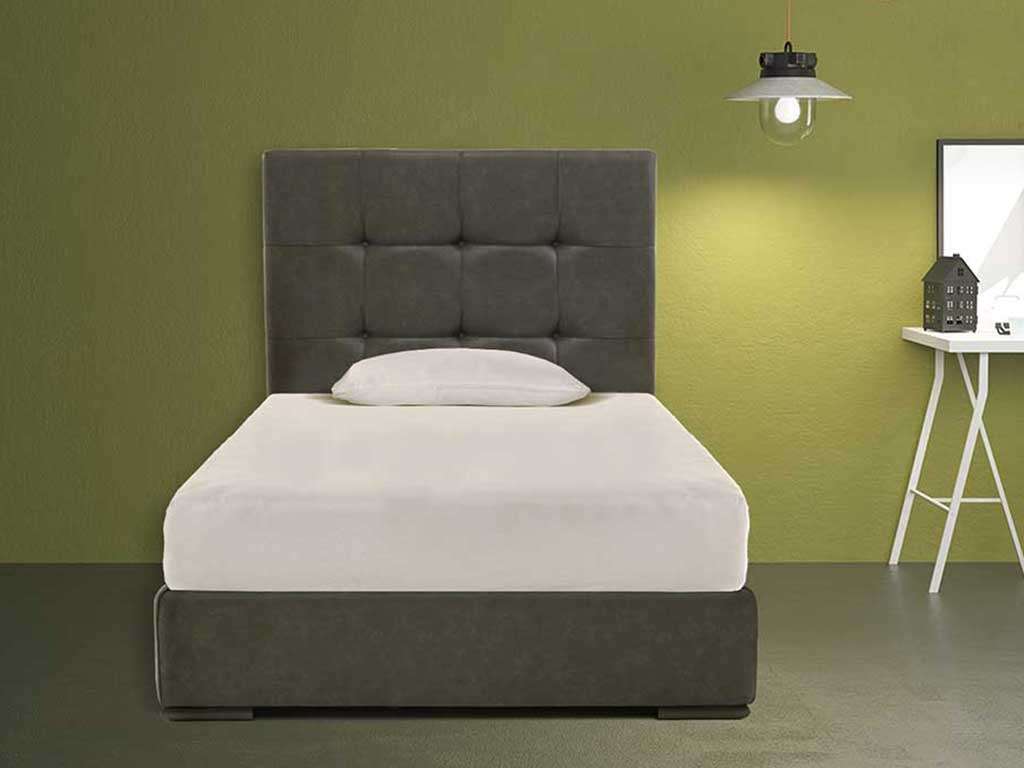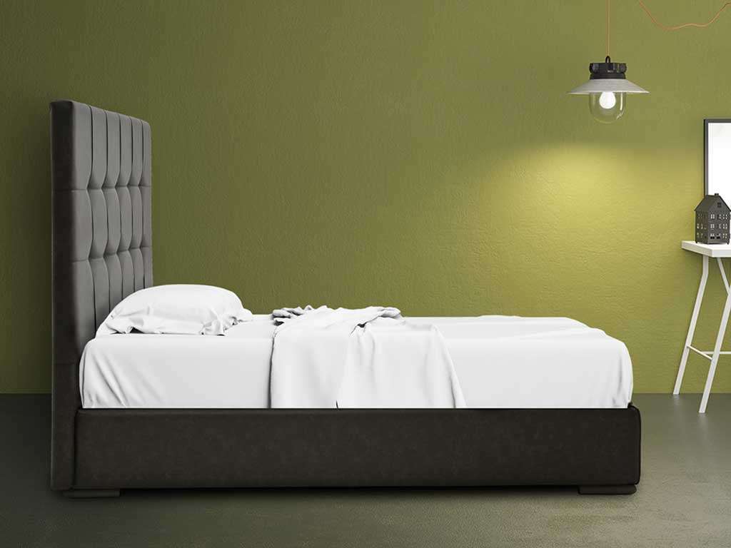 Single upholstered bed, elegant upholstered bed with a contemporary design, covered with eco-leather with vintage effect soft to the touch. The bed is characterized by the fine headboard, softened by the detail of the seams. Available in 2 versions, bed without container or storage bed. Dimensions: Single bed cm L 212 D 103 headboard H 141 cm - Bed base cm 85 X D 195 cm Bed frame H 27 cm Foot height 4 cm Removable bed frame - Headboard NOT Removable - bed base included (85 x 195 cm) Also available in 120 cm bed or double bed versions.