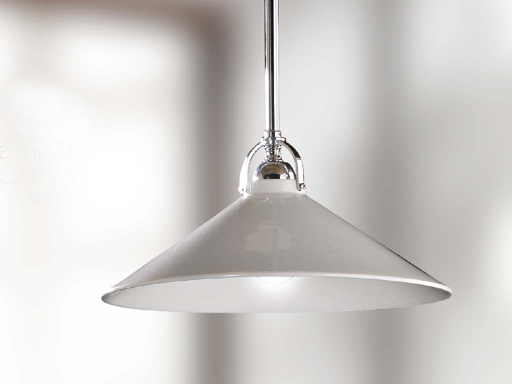 Vintage ceiling light, ceramic pendant light, height adjustable lamp, perfect as vintage chandelier or retro ceiling light. Retro pendant light made of white shiny Ceramic with telescopic arm and with metal details made of chromed steel, height adjustable, suitable as a chandelier for the kitchen table. Suitable as ceiling lamp for kitchen or living room, for modern or classic style houses. Dimensions: lampshade Ø 35 cm Adjustable height minimum H 63 cm - maximum H 92 cm Lamp E27-60W (lightbulb not included) Colours: Shiny White Ceramic and metal details made of chromed steel. These ceramic lamps delicately worked and decorated, are hand-made by artisans who are faithful to the ancient traditions of the Made in Italy. They have revisited the classical style thanks to their knowledge, following the latest trend of interior lighting design. Product made in Italy