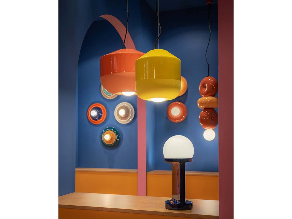 made of ceramic with vintage colors and white milk glass diffuser, its line is inspired by 1950s lines