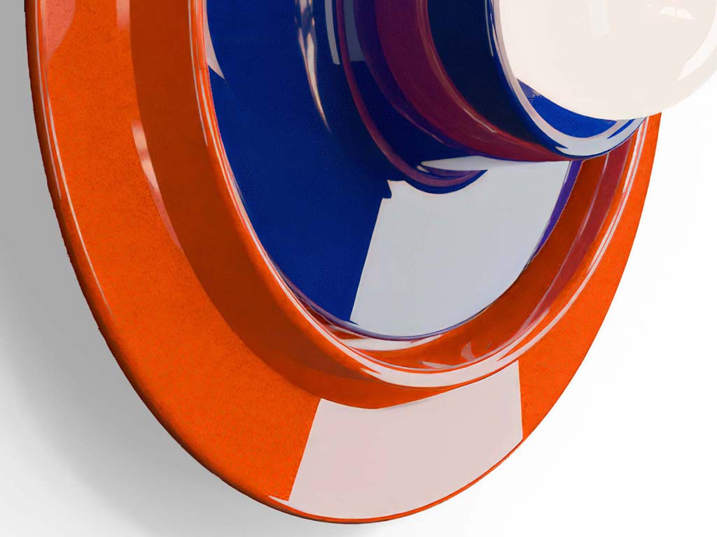 Vintage wall light, design wall light, ceramic wall light, ideal as a wall light. Retro style lamp, made of ceramic with vintage colors, its line is inspired by 1950s lines. Dimensions: Ø 28 cm SP 10 cm wall mount Ø 11.6 cm - Kg 3.05 - 1 x max 53 W E27 Colors: GSC - SAND GRAY + CREAM ACR - LIGHT BLUE + CREAM ABR - FOX ORANGE + ROBOT BLUE PGA - PETROL GREEN + YELLOW Technical Features: Class I - IP 20 - E27 socket - 220-240 V power supply. Energy Class A++ > D Ideal for design style houses or for public places, restaurants and hotels that want to create a unique atmosphere. Handcrafted product made in Italy