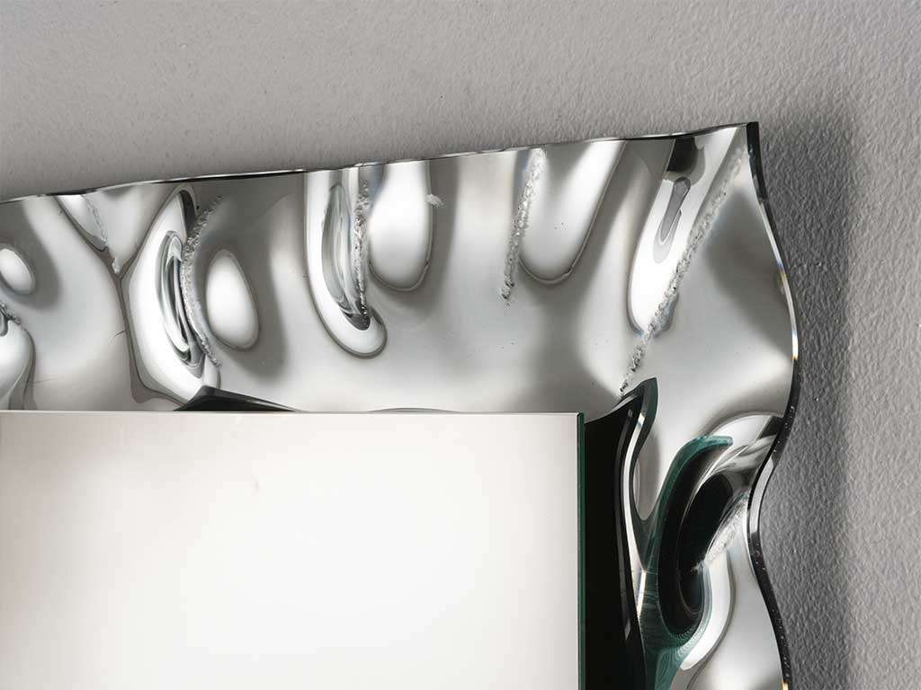 Wall mirror design, perfect as a modern wall mirror for the entrance hall, living room, bedroom or bathroom.Furniture mirror with mirror frame in curved glass, the shape of the frame, recalls that of the water surface, rippled by movement.A mirror with a refined design, with a strong visual impact.