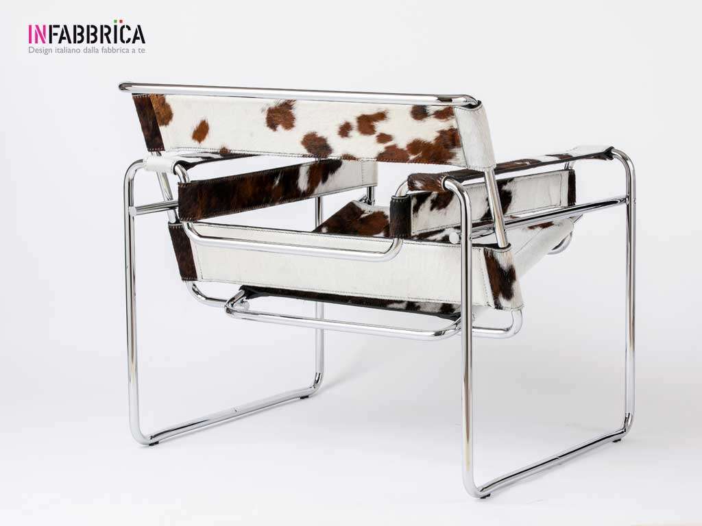 Wassily armchair with tube in chromed metal and leather or pony