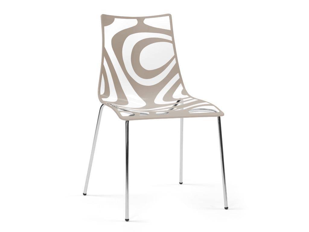 Technopolymer chair, co-printed, recyclable, characterized by the combination of a transparent surface with a shine surface, available in different colors.