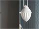 White ceramic ceiling light, suspension lamp adjustable in height , with white ceramic pleated lampshade with painted edge profile.