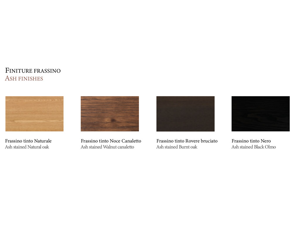 The solid ash wood structure further enhances the chair, with four elegant finish options: Natural, which highlights the light wood grain; Canaletto Walnut, warm and refined; Burnt Oak, deep and intense; and Black, sophisticated and bold.