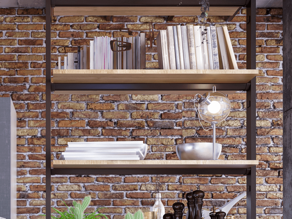 The bookcase, can be sold without melamine oak shelves then provided only with metal structure and shelf support.