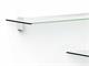 Mensola in vetro, mensole vetro design, mensola consolle ingresso, ideale come mensole in vetro per soggiorno o mensola consolle da parete. Mensola sagomata in vetro trasparente da 6 mm completa di supporti in alluminio. La sua forma la rende ideale per creare consolle d'ingresso o composizioni modulari di mensole e librerie. Portata consigliata massimo 7 kg.