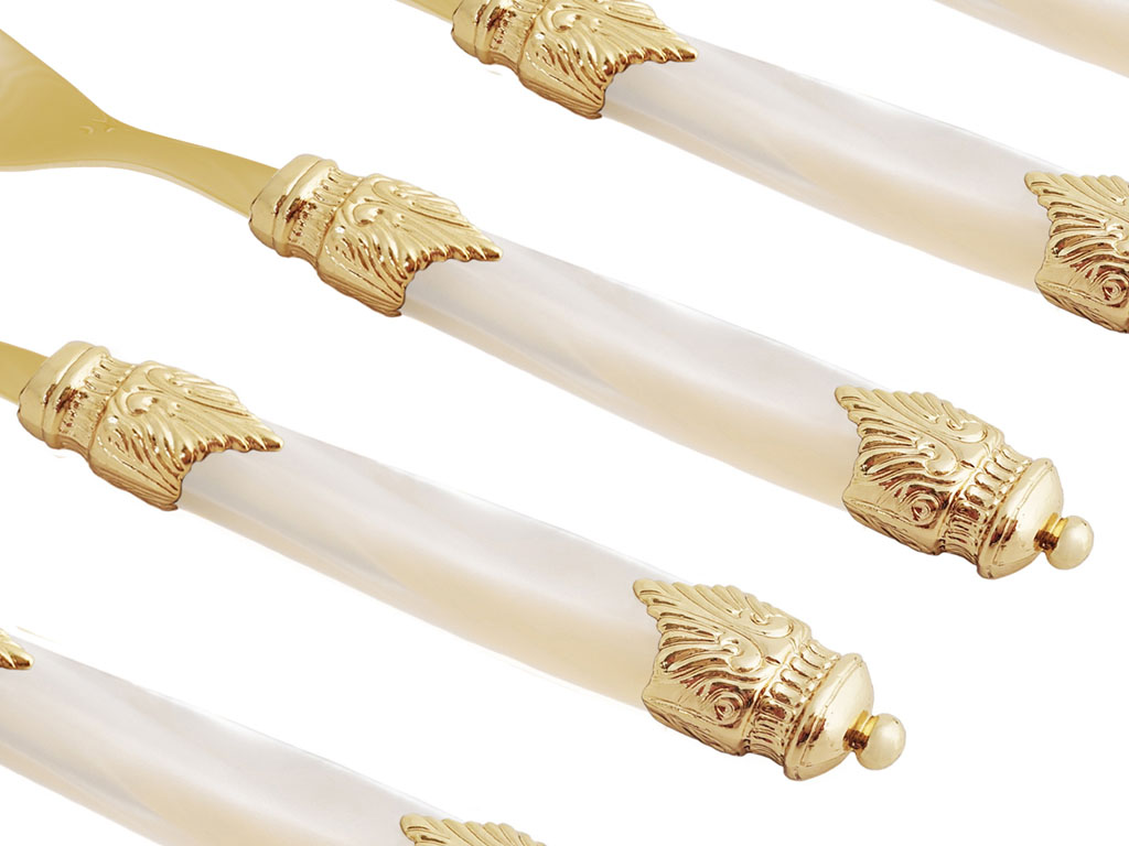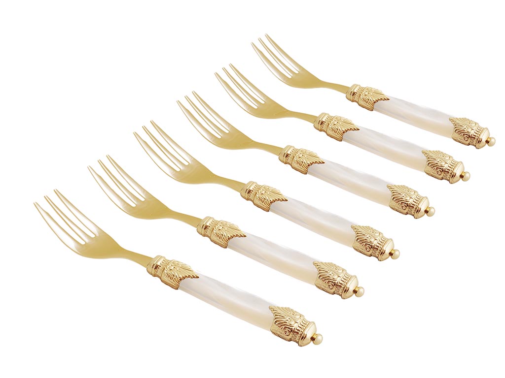 Set 6 Forchette da Dolce in Acciaio Dorato con Manico Effetto Madreperla – Eleganza per la Tavola Made in Italy