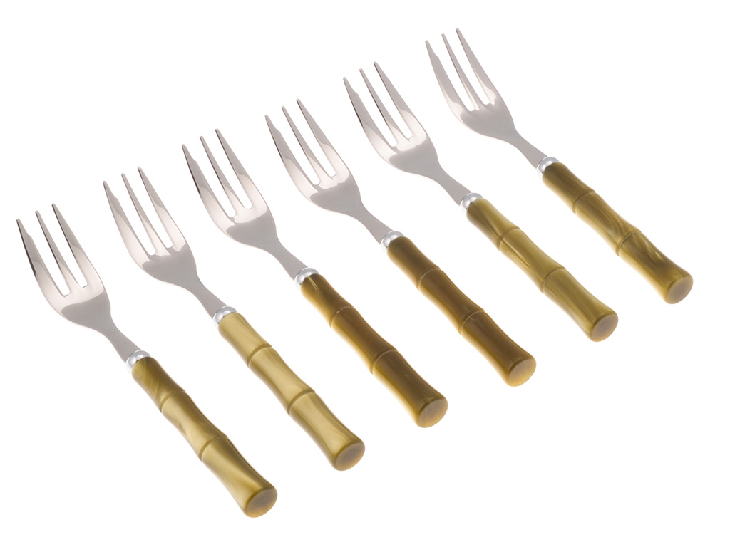 Set 6 Forchette da Dessert con Manico Effetto Bamboo – Avorio o Verde Oliva