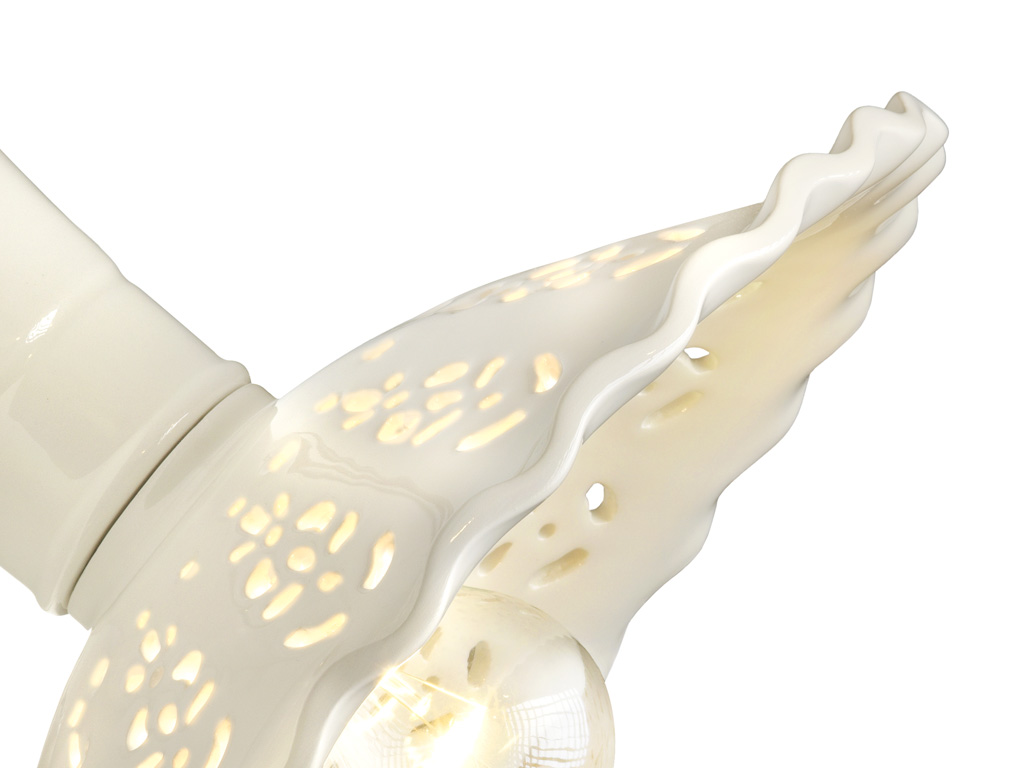 L’abat-jour ajouré en céramique diffuse une lumière douce et agréable.