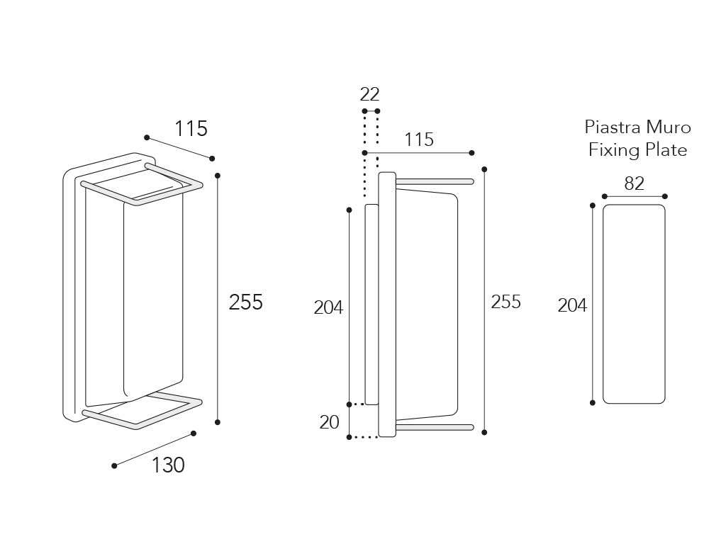 3410 - L 13 P 11 H 25.5 cm – Plaque au mur L 2.2 H 20.4 cm