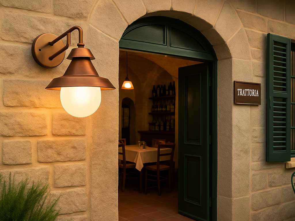 Applique murale extérieur vintage, lampadaire mural, luminaire laiton, idéale comme lampe nautique ou comme applique laiton vintage. Ligne de lampes pour extérieur avec structure en laiton bruni cuivre antique et verre blanc brillant. Lampes de haute qualité avec des finitions qui durent dans le temps, particulièrement indiquées pour les villas, les maisons en bord de mer ou les élégantes demeures historiques. Chaque article est réalisé avec soin et passion, il est mis en valeur par de petits traits distinctifs, caractéristiques typiques désormais exclusives du savoir-faire artisanal. Dimensions: L 25 x P 34,5 x H 32,5 cm max 70W E27 - IP44 - 220-240V (ampoule non inclue) Couleurs et finitions: BRRA - bruni cuivre antique Verre: Verre blanc brillant Le vieillissement de ces produits est faite à la main donc la tonalité du laiton pourrait avoir des nuances différentes de celles représentées en photographie. Ces produits sont fabriqués à la main avec des matériaux traditionnels et de qualité comme le laiton, savamment créés à la main pour obtenir de petits et grands jeux de lumière au design unique et de haute qualité avec des finitions qui durent dans le temps. Verres, soufflés par des maîtres artisans selon des techniques de travail antiques. D'éventuelles imperfections mineures doivent être considérées comme des qualités et des traits distinctifs de l'ouvraison recherchée et non comme des défauts de fabrication. Produits pour l'extérieur, ils sont traités pour vivre même près de la mer. Produit fabriqué en italie