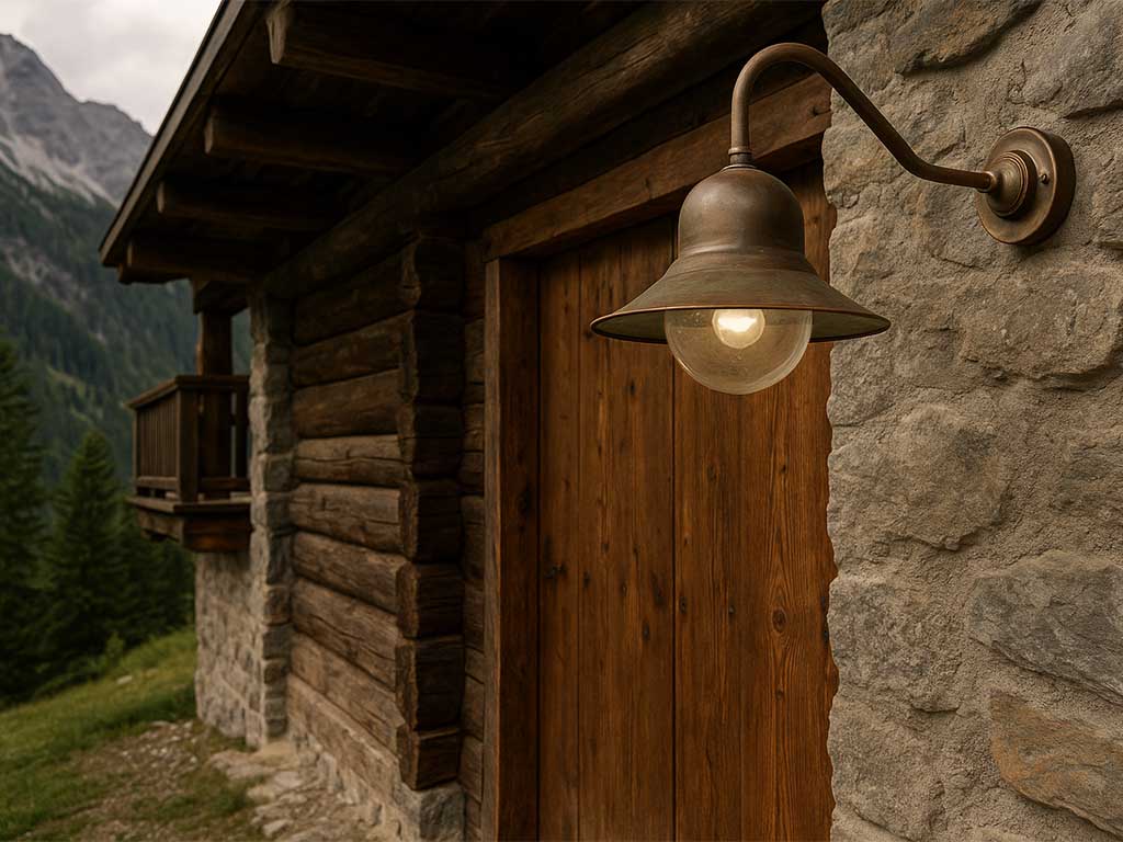 Applique murale jardin, applique murale vintage, lampe murale laiton, idéale comme applique murale extérieur ou comme applique industrielle. Applique extérieure en laiton, idéale pour l'éclairage des maisons de la mer, maisons de campagne ou comme éclairage des maisons du centre historique. Le laiton peut être utilisé à l’extérieur dans des conditions météorologiques difficiles et très agressives, comme les zones côtières ou les zones enneigées. Dimensions: P 49 H 42 cm - abat-jour Ø28.5 – fixation murale Ø11 cm Verre: Polycarbonate transparent Finition: Laiton vieilli cuivré (.AR) Version dans la photo Laiton vieilli bruni (.BA) couleur brun foncé Degré de protection IP44 Dans le douille E27 on peut installer ampoule LED, pour obtenir basse consommation d’énergie. Classe d’éfficacité A+÷E AMPOULE NON INCLUSE. Produit fabriqué en Italie. Le vieillissement de nos produits est fait à la main c’est pourquoi la teinte du laiton pourrait avoir des nuances différentes de celles représentées sur la photographie. Le vieillissement fait à la main n’empêche pas l’oxydation naturelle de ce métal qui, exposé à l’extérieur, est sujet à l’action des conditions naturelles. Nos produits ne sont pas autonettoyants, par conséquent, s’ils viennent à être recouverts de salissure ou autre, il faut les nettoyer avec les produits habituels que l’on utilise pour le nettoyage des métaux. Une fois la procédure de nettoyage effectuée, ils produiront de nouveau au fil du temps la patine typique du vieillissement naturel du laiton. Ce produit est réalisé avec extrême attention aux détails, à la résistance des matériaux et à la qualité des finitions, pour construire chaque fois une pièce unique. Les fabrications sont réalisées par experts artisanales, qui grâce à leur professionnalité, ils sont à la base des produits de qualité Made in Italy.