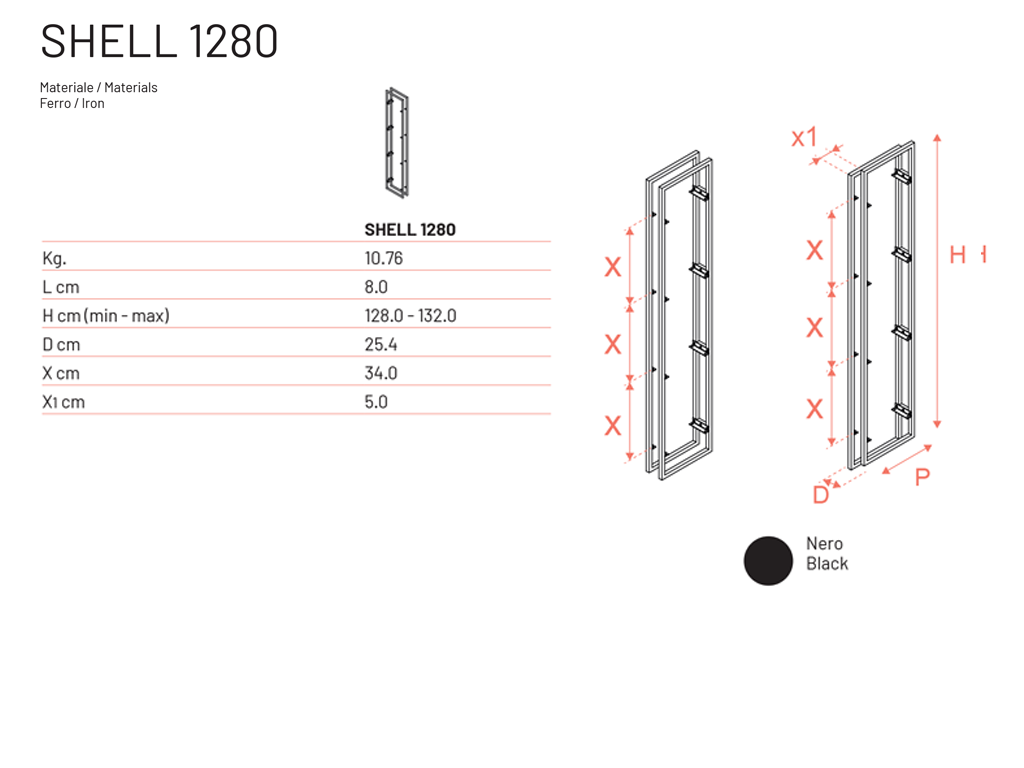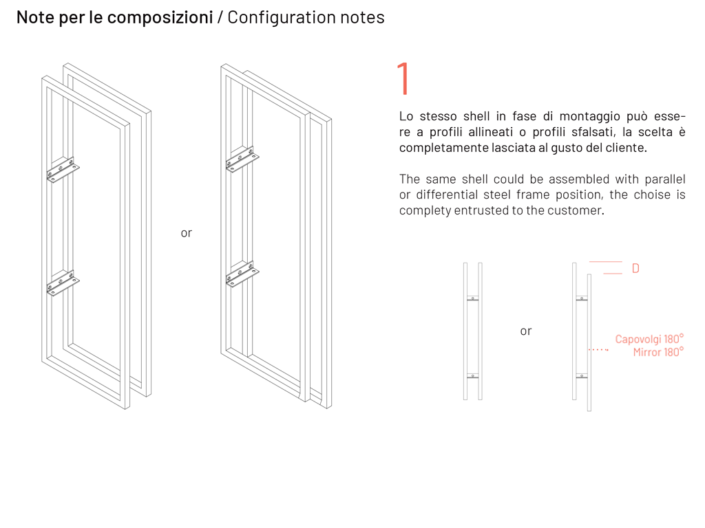 Style: minimal et fonctionnel, projeté comme bibliothèque intégrée et modulaire. On peut associer le cadre de Shell H128 avec le cadre de Shell H196, pour créer des solutions uniques et originelles (voir la photo du schéma de la composition).