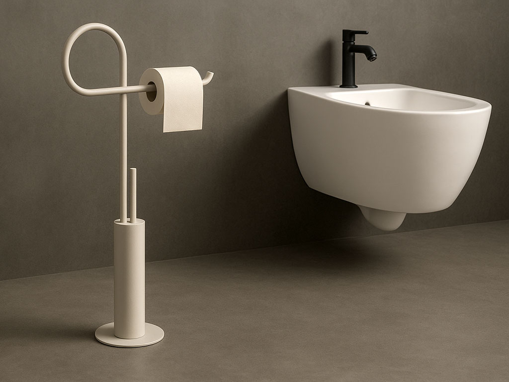 Porte-balai et porte-papier hygiénique design, accessoire de salle de bains coloré, peint, en acier inoxydable AISI 304, idéal comme accessoire de salle de bains moderne....