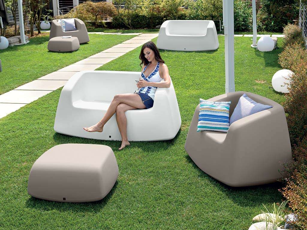Canapé d’extérieur en polyéthylène, adaptée aussi bien comme canapé de jardin que comme canapé de terrasse, facile à nettoyer et à déplacer.