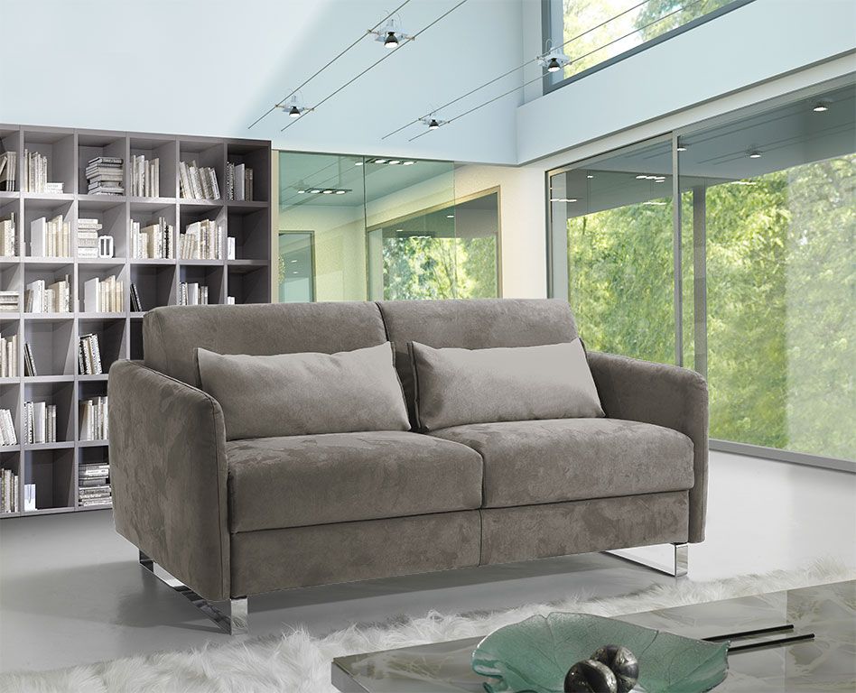 Canapé-lit design avec les lignes élégantes, avec brasses ergonomiques, disponible en plusieurs tailles, il se transforme en lit en peux simple étapes.
