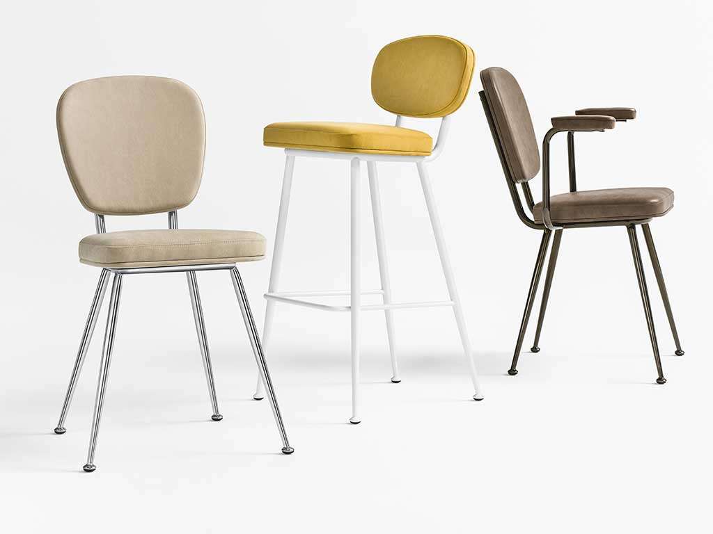 Avec assise et dossier en forme RONDE, avec cadre en métal Ø 22 mm et pied anti-rayures.