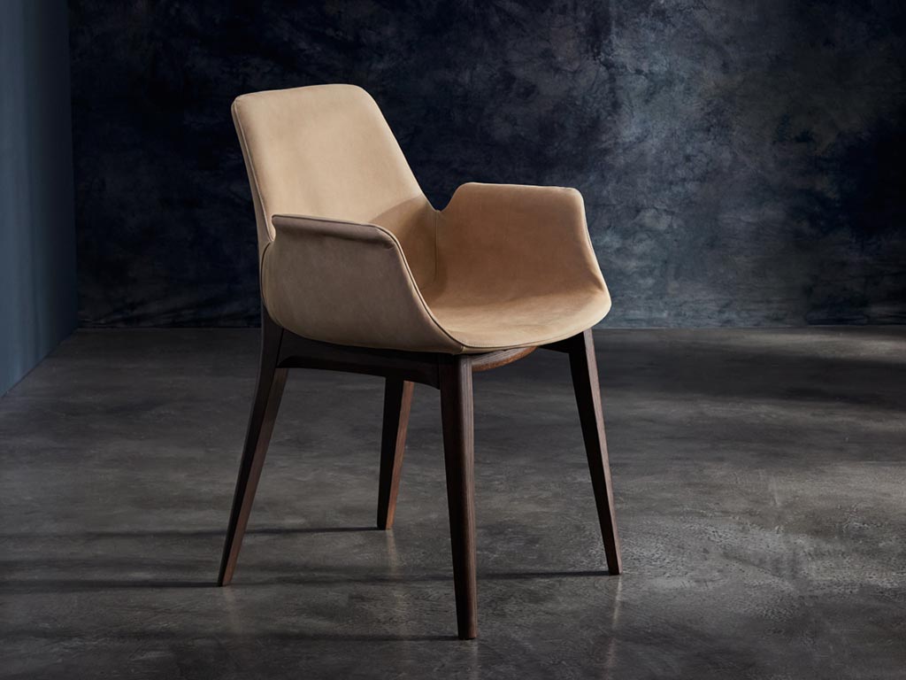 La chaise Isabel Arm est une version plus élégante et confortable de la collection Isabel. Avec ses accoudoirs intégrés et sa forme enveloppante, elle associe design moderne, confort et savoir-faire italien.