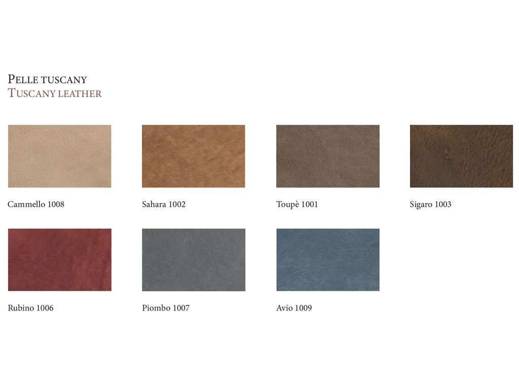 Revêtement : Cuir demi-fleur Tuscany, teint à l’aniline et poncé à la main