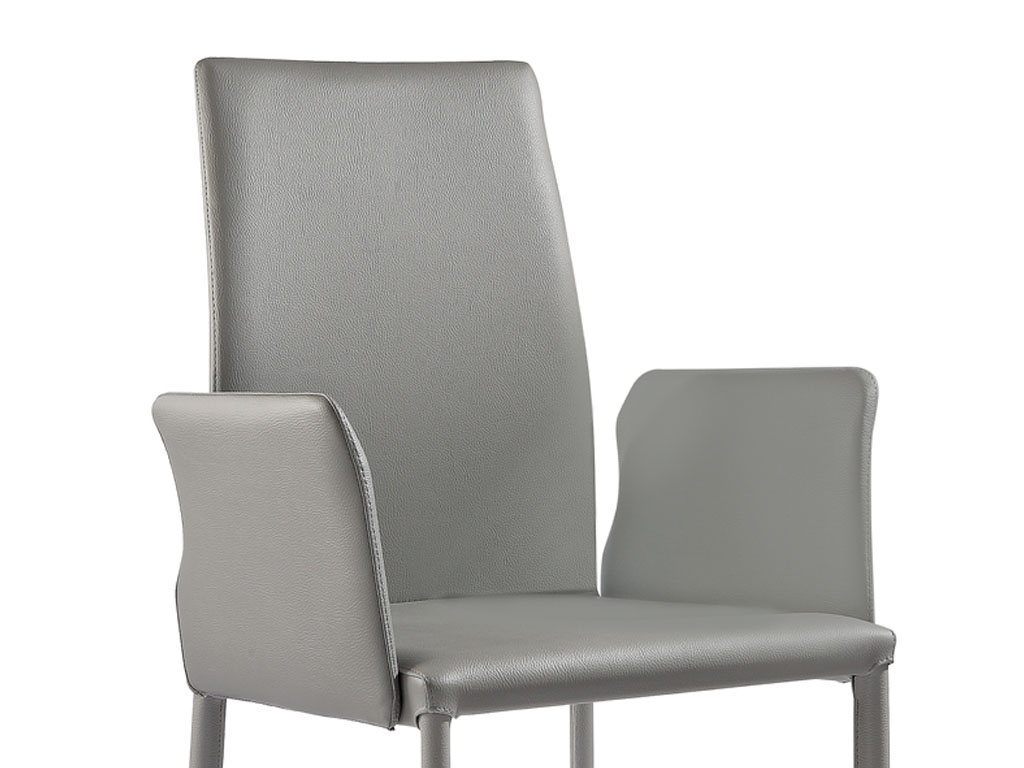 Chaise moderne avec accoudoirs disponible avec dossier haut ou dossier bas légèrement courbé.