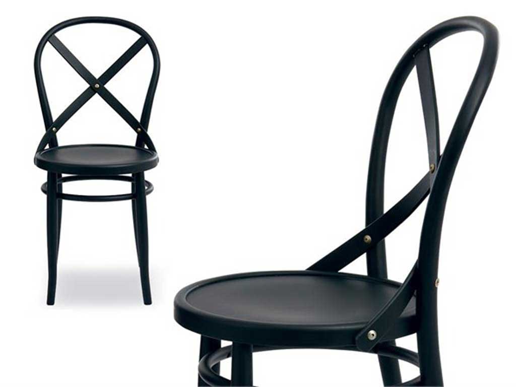Chaise industrielle chic, chaise en bois de design vintage, caractérisée par des lignes douces et par le dossier enveloppant à bandes croisées, le style rappelle celui des chaises Thonet en bois courbé, mais dans une version plus moderne. Disponible en différentes finitions du bois.