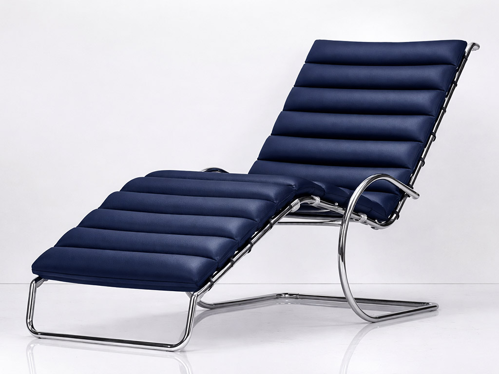 Mies van der Rohe, pendant l’ère du tubulaire d’acier, se consacra à la réalisation de plusieurs chaises longues.
