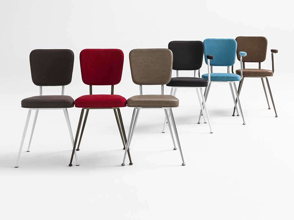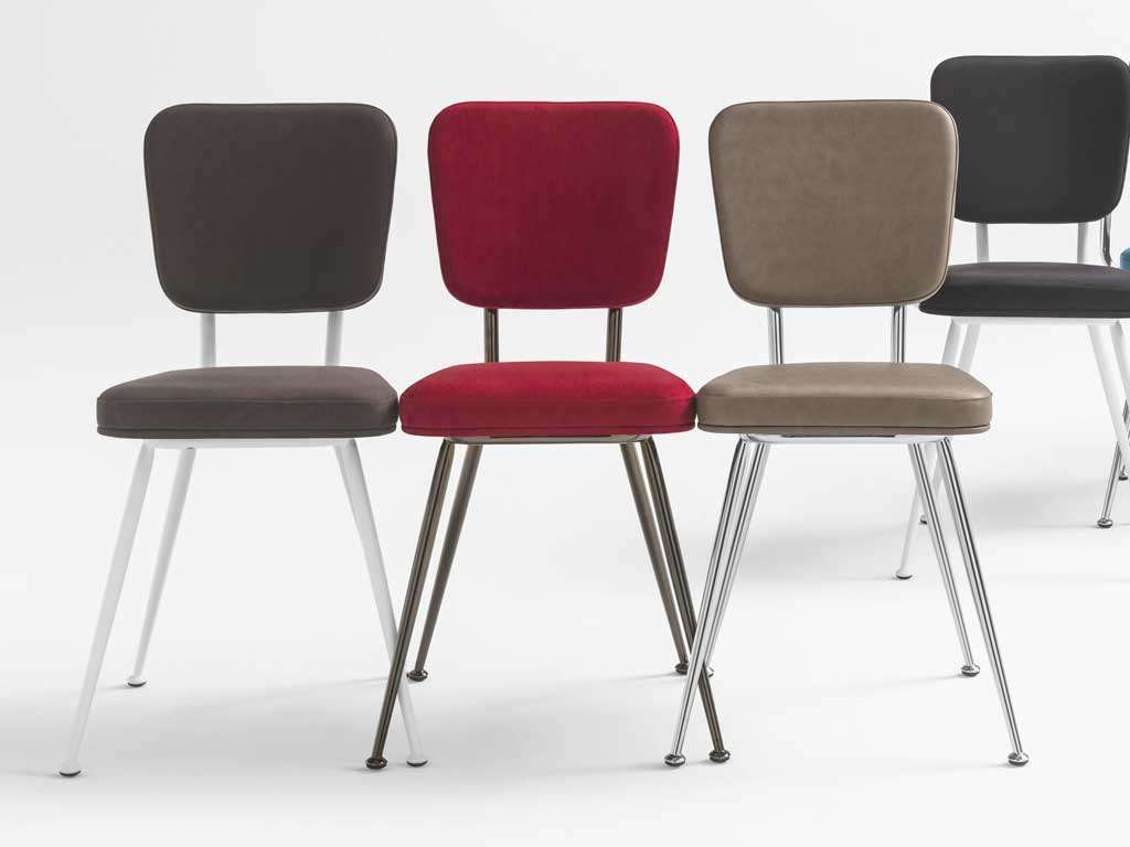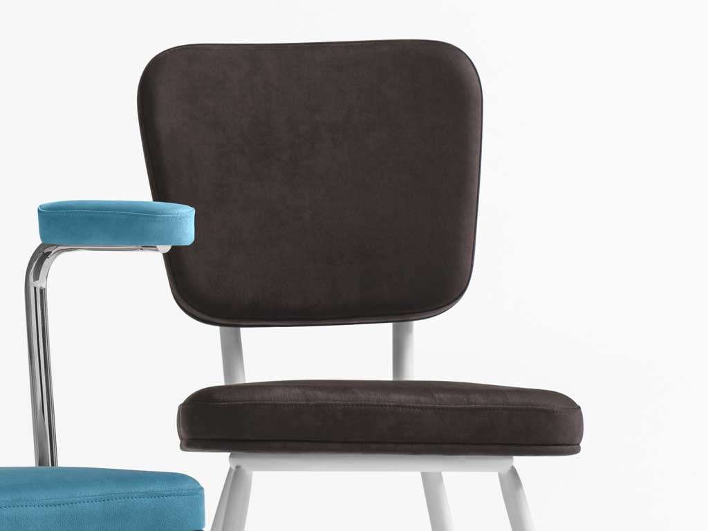Avec assise et dossier en forme CARRÉE, avec cadre en métal Ø 22 mm et pied anti-rayures.
