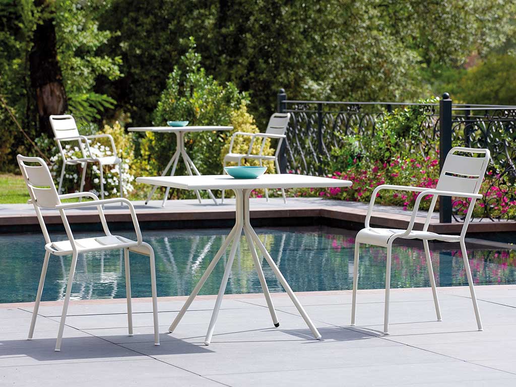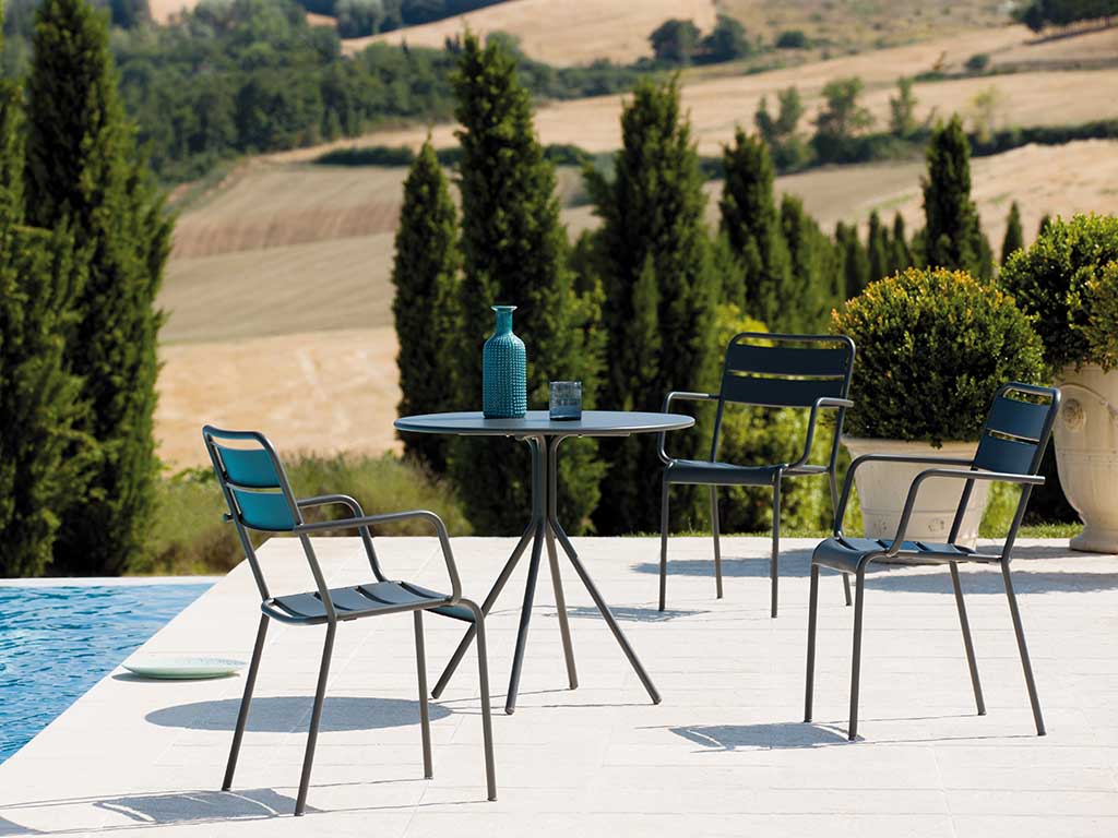 Chaises avec accoudoirs, chaises en fer, chaises vintage, fauteuils de jardin, idéal comme chaises de jardin en fer ou chaises pour l’extérieur. Chaises design en fer, fauteuils avec structure en métal, fauteuils de jardin en métal peint. La collection Twist se caractérise par un design au caractère simple mais unique, qui rappelle le style des années 60 mais de façon contemporaine. Chaises, bancs et fauteuils empilables à combiner avec des tables en métal coloré pour meubler de manière fonctionnelle et imaginative, sous le signe de la praticité. Dimensions : L 55 x P 57- assise H 46 cm - dossier H 86 cm – accoudoirs H 67- Poids 5,6 Kg Boîte de 4 fauteuils Fauteuils empilables Les couleurs affichées n’ont qu’une fonction de référence. Meubles de design fabriqués à la main sous le signe de la beauté, de la robustesse et de la fonctionnalité. Produit réalisé en Italie