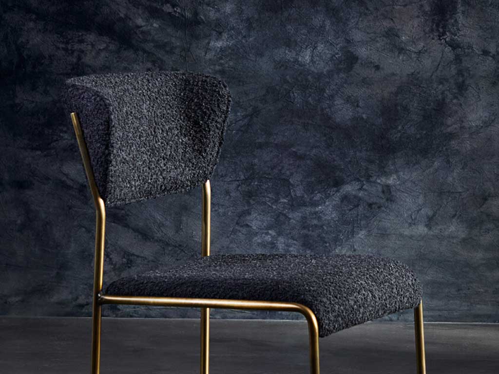 La silhouette douce et accueillante du dossier enveloppe délicatement l’assise, offrant soutien et confort sans compromettre la légèreté visuelle. Les pieds fins en métal, disponibles en finitions bronze brossé ou noir mat, apportent une touche de dynamisme et de modernité, faisant de cette chaise un choix idéal pour les salles à manger, les salons, les restaurants ou les espaces contract.