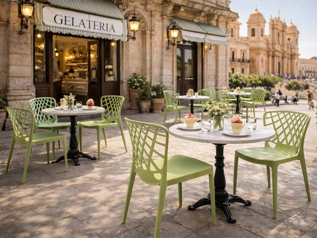 Disponibles dans une large gamme de couleurs, des teintes neutres aux nuances les plus vives, les chaises Porto permettent de personnaliser chaque environnement avec style et de créer des solutions cohérentes et élégantes pour les restaurants, bars et espaces extérieurs de caractère.