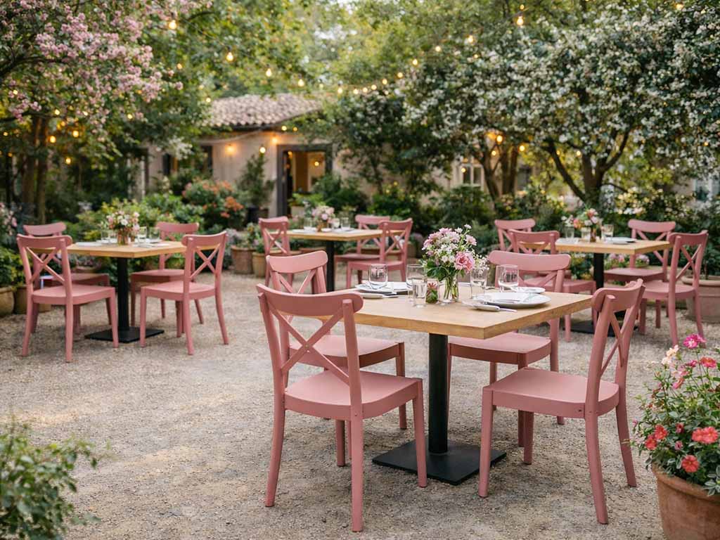 Dans le secteur horeca, elles représentent une solution stratégique comme chaises de restaurant, chaises de bar et chaises de trattoria, combinant esthétique raffinée et fonctionnalité professionnelle. Empilables, légères et résistantes, elles facilitent la gestion des espaces et répondent aux besoins des établissements à forte fréquentation.