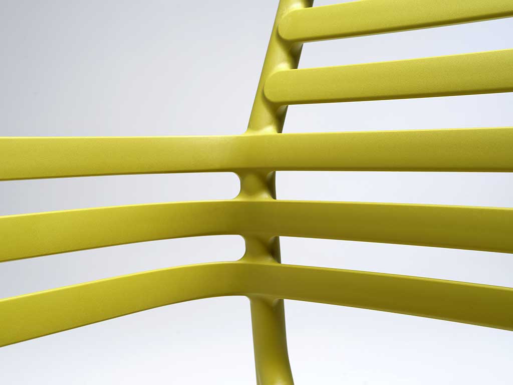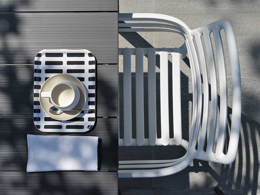 Design raffiné et attention aux détails, siège en résine fiberglass traitée anti-uv et coloré en masse.