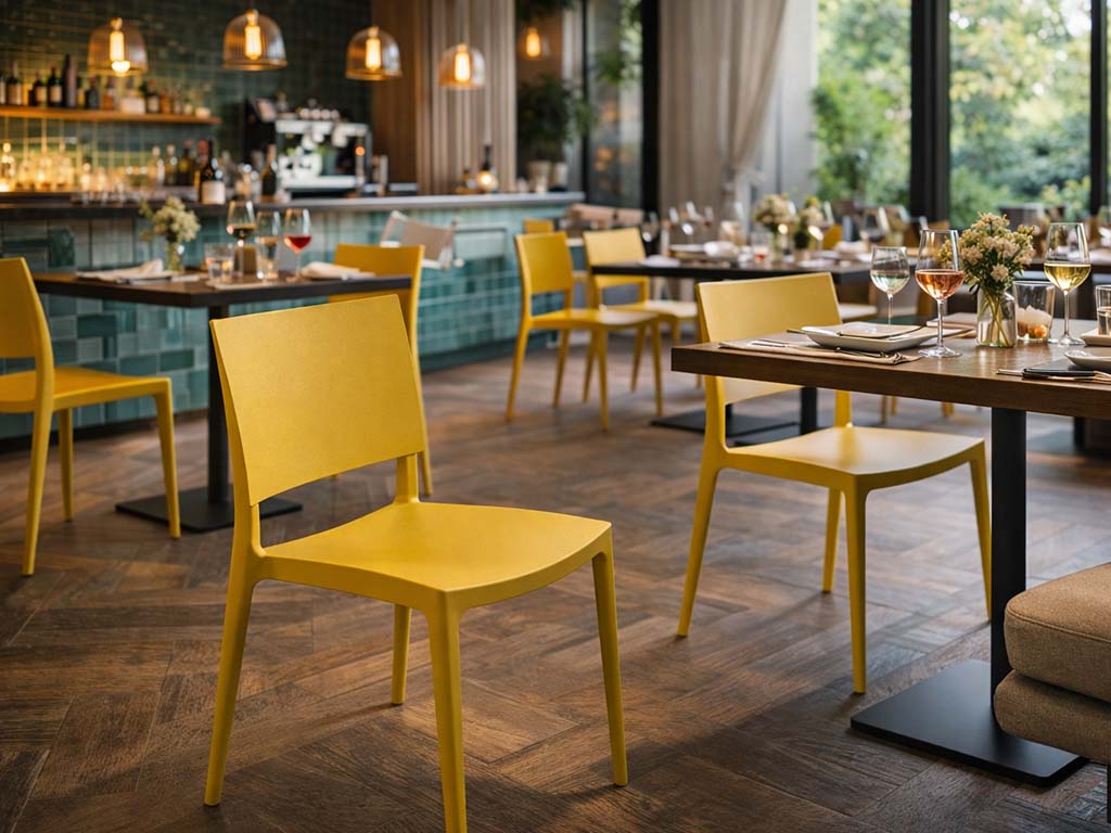 Grâce à leur design polyvalent et à la qualité des matériaux, elles sont également idéales comme chaises de restaurant et chaises de bar, parfaites pour les établissements souhaitant allier esthétique et fonctionnalité. Légères mais robustes, facilement empilables et résistantes à un usage intensif, elles représentent une solution intelligente pour le secteur de l’hôtellerie.