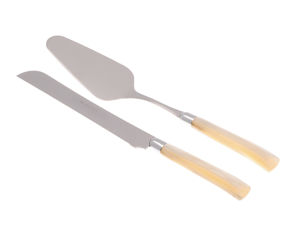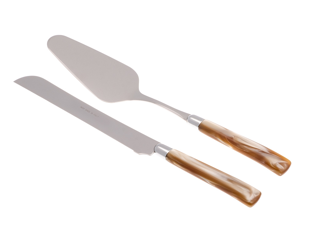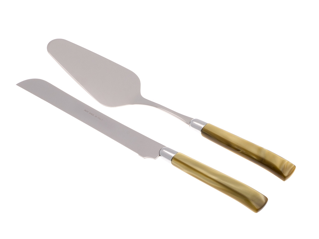 Set de 2 Couverts à Gâteau – Pelle et Couteau en Acier Inoxydable avec Manche Effet Nacre