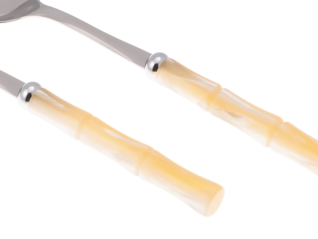 Set de 2 Couverts à Salade avec Manche Effet Bambou – Ivoire ou Vert Olive