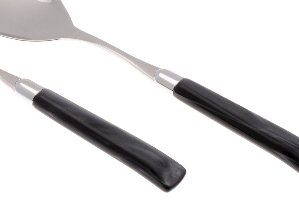 Set composé de 2 ustensiles pour servir la salade (1 cuillère dentée et 1 cuillère lisse)