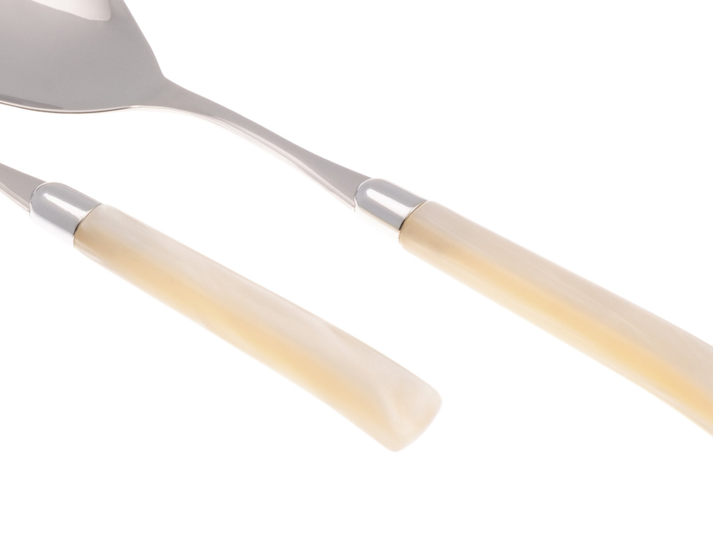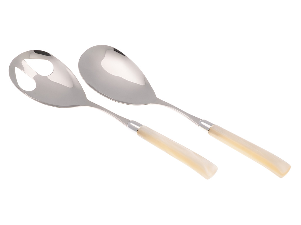 Set de 2 Couverts à Salade – Cuillère Dentée et Cuillère Lisse en Acier Inoxydable avec Manche Effet Nacre