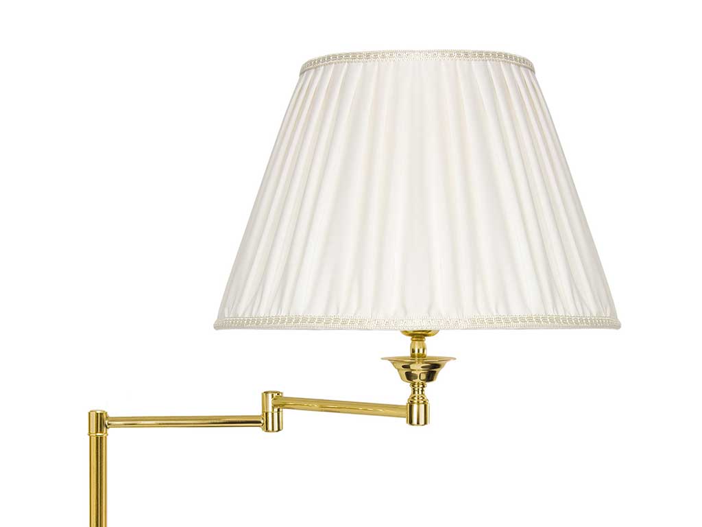 Lampadaire de salon classique avec structure en laiton et abat-jour en tissu blanc ivoire, lampe avec bras extensible avec articulation pour un réglage optimal de la lumière, idéal comme lampadaire de salon ou liseuse. Lampadaire classique avec structure en laiton et abat-jour en tissu, fabriqué en Italie.
