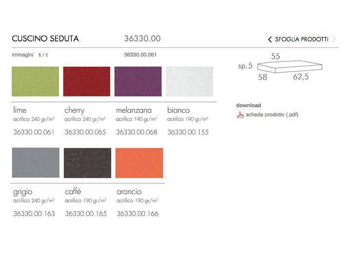 Coussins et tissu extérieur en Acrylique traité contre les taches et la moisissure; intérieur en polyuréthane expansé.
