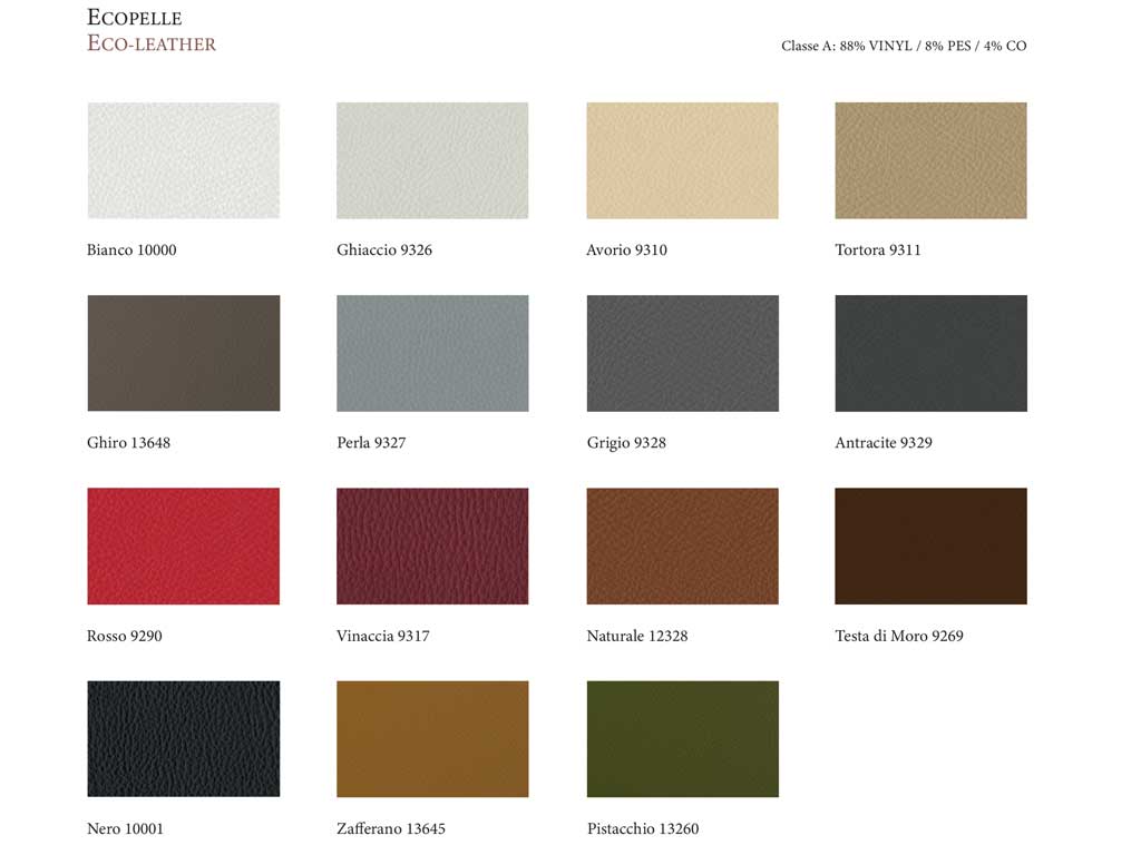 Couleurs disponibles dans une large gamme (voir l’image échantillon couleur). Au moment de la commande, spécifiez dans le "champ notes" le code de couleur souhaité, visible dans les fiches de l’échantillon de couleur présentes dans les images du produit.