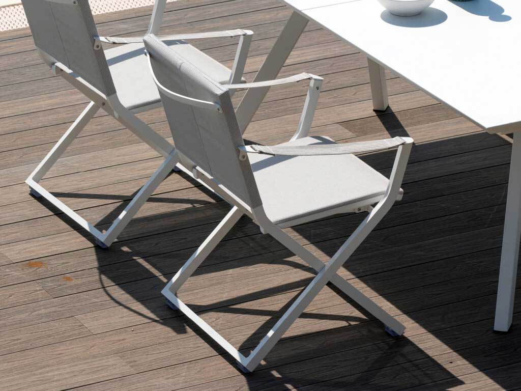 Fauteuil pliant, chaise pliable idéal comme fauteuils d’extérieur ou chaise de jardin pliante. Fellini est un fauteuil de jardin pliant doté d'une structure en aluminium, d'un revêtement en tissu pour l'assise et le dossier et d'une corde pour les accoudoirs, adapté à tout type d'environnement.