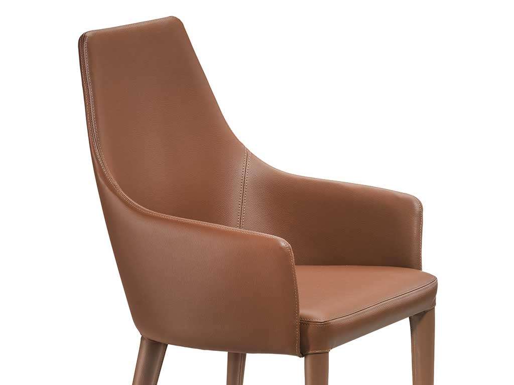Fauteuils de salon en cuir avec accoudoirs, idéal comme fauteuils de design en cuir. Structure de la chaise en acier, entièrement recouverte de cuir ou éco-cuir d’excellente qualité, qui en exaltent l’élégance et le travail artisanal. Disponible aussi dans la version sans accoudoirs et dans la version avec les jambes en bois. Dimensions: L 48 x P 61 H 91 - Assise H 48 cm - Kg 11 Couleurs disponibles dans une large gamme (Voir l’image de l’échantillon de couleurs). Au moment de l’ordre spécifie dans le "champ notes" le code de couleur désiré, visibles sur la feuille-échantillon de couleur des images du produit. Les coutures peuvent être choisies de LA MÊME COULEUR du revêtement ou en CONTRASTE. SIMILI CUIR Malléable et versatile, produite à base de coton et d’une couche synthétique qui reproduit le cuir, elle garantit une excellente résistance au frottement et à l’usure. Elle permet de conserver les avantages des chaises traditionnelles et des sièges en cuir en respectant les animaux.