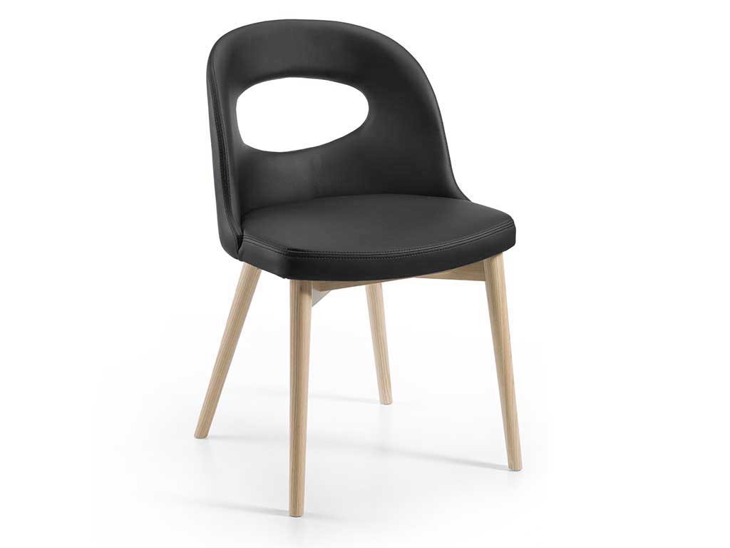 Structure de la chaise en bois de frêne , entièrement recouverte de cuir ou éco-cuir d’excellente qualité, qui en exalte l’élégance et le travail artisanal.